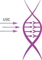 Light in the wavelength range of 200-280 nm.This high-energy light penetrates the cells of microorganisms.These bonds damage the DNA/RNA. preventing the replication of bacteria.This renders it harmless and unable to reproduce, effectively “killing” it.