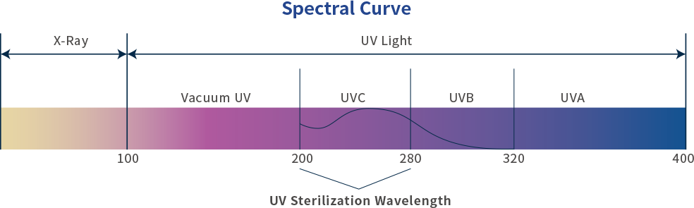 UVC is short for Ultraviolet-C, the highest-energy portion of the ultra violet light spectrum. It’s a type of electromagnetic radiationwith wavelengths between 200 and 280 nanometers.